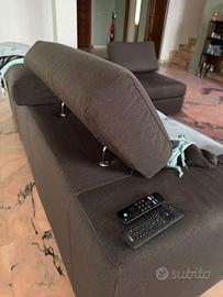 Vendo divano moderno con isola (chaise longue), ampio e molto confortevole. Il divano è dotato di 3 poggiatesta regolabili, che possono essere alzati o abbassati per trovare la posizione più comoda durante la seduta o il relax. Misure Lunghezza: 245 cm Profondità seduta: 58 cm Caratteristiche isola / chaise longue 3 poggiatesta regolabili seduta ampia e comoda colore marrone scuro struttura solida Condizioni Il divano è in buone condizioni generali. Presenta solo un piccolo difetto sul bracciolo dell’isola, leggermente sfondato, che non compromette comunque l’utilizzo del divano. Vendita per cambio arredamento. prezzo poco trattabile