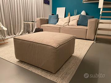 Divano di design in tessuto di cotone naturale colore corda lunghezza cm 240 pari al nuovo completo di pouff. Stile living divani