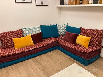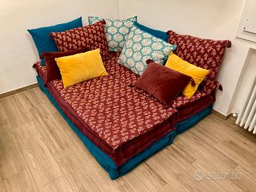 Doppio divano componibile (anche ad angolo) con cuscini, composto da: