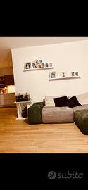 2 sedute grigie, 1 bracciolo largo verde ed 1 pouf