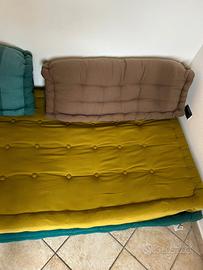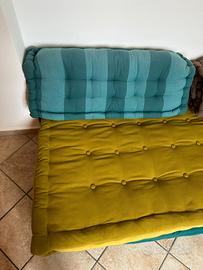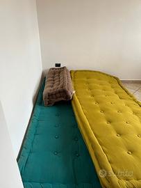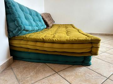 Possibili 2 letti: 2 materassi e 2 cuscini. Dimensioni divano: lunghezza cm.210 profondità cm.95 altezza cm.15