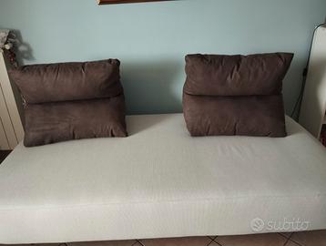 Vendo nuovo mai usato divano modulare con schienali movibili Samoa Scavolini molto originale, completamente sfoderabile sia la base che i cuscini. Misure divano colore panna 2 metri per 1 metro.Misure cuscini color marrone/camoscio 69x64 cm. Altezza piedini 17 cm, altezza da terra 41cm.