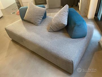 Divano modulare Poltronesofà con modulo principale color grigio/carta da zucchero da 110x200x40, due poggiaschiena mobili color blu petrolio da 30x30x70 e due cuscini in tinta 50x50. Tutto interamente sfoderabile e lavabile. Ottime condizioni, ritiro a Milano. Prezzo trattabile
