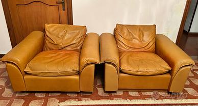 Divano Molteni completo di 2 poltrone in vera pelle. Misure: Divano: 240 cm x 95 cm (L x P); Poltrone: 105 cm x 95 cm (L x P).