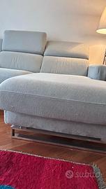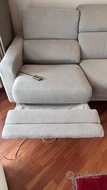 Pari al nuovo. 4 posti, seduta lunga a destra e una relax con meccanismo elettrico, sulla sinistra. Chaise long. Poggiatesta reclinabili. Comfort eccezionale per tutta la famiglia. Completamente sfoderabile. Design moderno che si adatta a qualsiasi ambiente. Imbottitura di alta qualità. Un tocco di raffinatezza per la tua casa. In aggiunta, in omaggio, copertura blu, ancora imballata, in confezione originale, del valore di 350 euro. Usato pochissimo, tenuto meticolosamente. Vendo per inutilizzo di quella camera. Pagato quasi duemila euro. Vero affare. Misure: 104X241X170