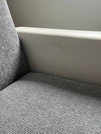 L’unico difetto che ha sono 2 striscie nel bracciolo di sinistra che si vedono in foto.