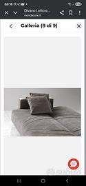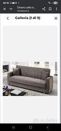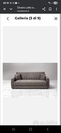 Divano color marrone chiaro. Presenta un bracciolo un po' lento.
