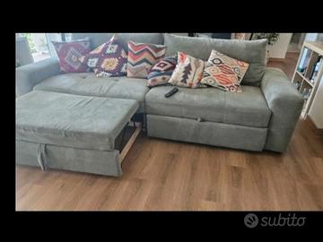 Divano angolare in tessuto, perfetto per il soggiorno. Nemmeno un anno di vita per trasloco - verde -divisibile in due unita - Include poggiagambe estraibile