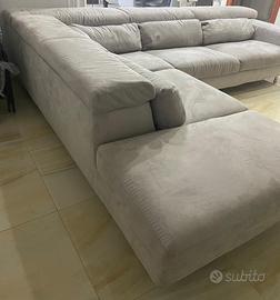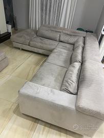 Divano poltrone sofá di colore grigio chiaro con piedini di colore acciaio. 2,90m con sceslong 2,40m