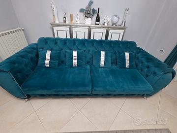Vendo divano in velluto idrorepellente antimacchia lavabile, color verde petrolio