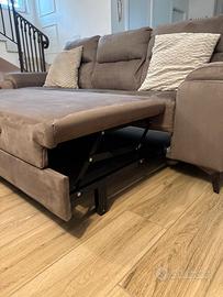 12 mesi di vita, pari al nuovo, colore tortora, rivestito con microfibra altamente resistente alle macchie, idrorepellente e di facile pulizia.