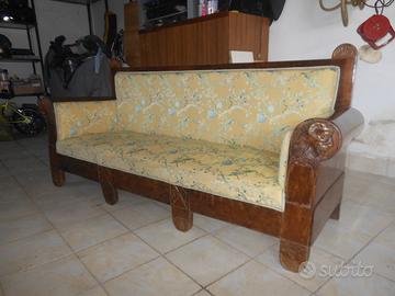 Divano d’epoca napoletana fine 800 inizio 900, noce e mogano, tappezzato con tessuto pregiato originale di San Leucio (CE). Restaurato e in buone condizioni, prezzo da concordare dopo la visione. Spese di spedizione indicative da verificare con il corriere a seconda della destinazione.
