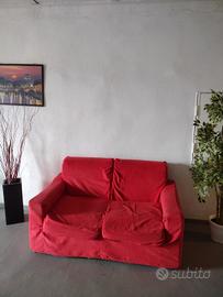 Divano due posti, colore rosso, condizioni discrete. Misure: cm 150 (larghezza) x cm 90 (profondità) x cm 85 (altezza). Solo ritiro zona Arenella-Camaldoli.