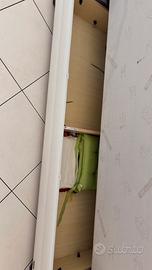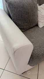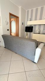 Vendo divano click clack mondo convenienza con contenitore e letto. 224 cm di lunghezza. Braccioli in similpelle bianca e seduta in tessuto grigio. Presenta una bruciatura sulla seduta e un bracciolo ha sefni di usura.Disponibile da fine maggio
