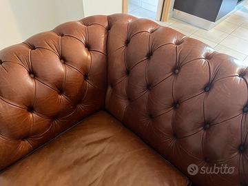 Vendesi splendido divano Natuzzi (originale, con logo identificativo riportato in foto) a 2/3 posti. Il divano è realizzato in vera pelle di alta qualità in una calda tonalità cuoio/marrone brunito, perfetta per ambienti sia classici che moderni/industrial. Il design richiama l'iconico stile Chesterfield, con lo schienale e i braccioli interamente lavorati a capitonné artigianale. La seduta è estremamente comoda grazie ai cuscini ampi e alla qualità strutturale tipica del brand Natuzzi. CARATTERISTICHE PRINCIPALI: • Marca: Natuzzi (Editions/U-Logo). • Materiale: 100% Vera Pelle (morbida al tatto e molto resistente). • Stile: Capitonnè con piedini in legno scuro tornito. • Stato: Il divano è in ottime condizioni generali. La pelle presenta una bellissima patina naturale che ne aumenta il fascino vintage; non presenta strappi o segni profondi di usura.