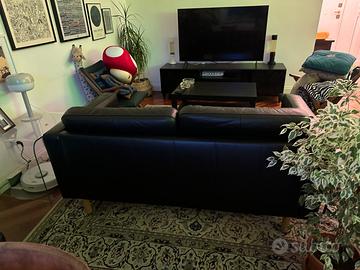 Divano due posti Ikea modello LANDSKRONA in pelle nera con piedi in legno. Tenuto in ottime condizione, elegante e molto comodo!