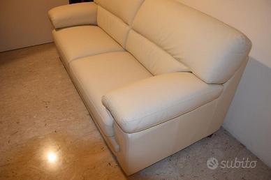 In vendita divano 3 posti fisso Nicoline, esposto in negozio sottocosto per rinnovo esposizione, modello Tivoli in vera pelle colore 1037 beige: