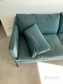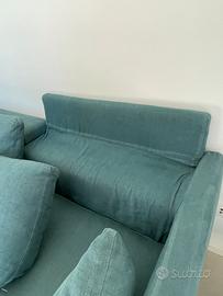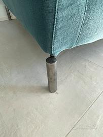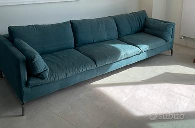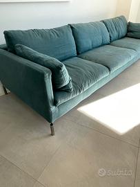 Divano Novamobili in lino verde petrolio 3 posti lunghezza 2,89m profondità 1m doppia altezza 60/80cm