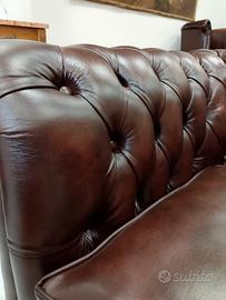 Nuovo divano 3 posti chesterfield ( chester ) modello club inglese originale realizzato artigianalmente in Inghilterra con pelle bovina di pieno fiore marrone anticato ( Antique Brown ), tamponata e stonalizzata a mano.