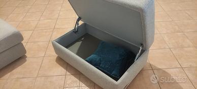 Vendo divano appena acquistato da Poltrone & Sofà e MAI UTILIZZATO. Subito dopo l'acquisto ho deciso di vendere l'appartamento vuoto e nel quale non vivo. Il divano è stato quindi portato nel mio appartamento dove né io né nessun altro ha avuto la possibilità di sedersi. Insomma, come da vetrina. Si tratta di un divano a L che ha la possibilità di ingrandirsi estraendo un altro pezzo da sotto. È stato acquistato anche con l'aggiunta di un pouf che funziona anche come contenitore. Con 3 cuscini nuovi.