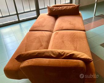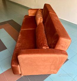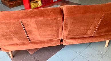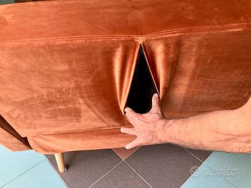 Causa errata valutazione ingombro nell'ambiente preposto vendo divano velluto, Maison du monde, quattro posti facilmente trasformabile in letto. Color scoiattolo. Cuscini sfoderabili. Schienali contenitori. NUOVO. Misure in cm.: profondità 86 altezza 83 larghezza 208 peso 48 kg.