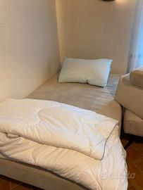 Divano Nuvola 195 x 110 cm,schienali in ecopelle e rivestimento tessuto antimacchia con il suo pouf 80x80cm prodotto da BM Sofà Lissone. Tutti gli elementi sono mobili e componibili, il divano si trasforma anche in letto come da foto.