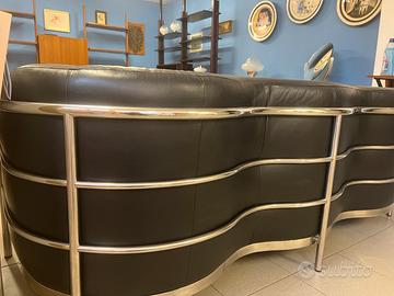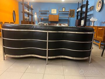 Divano Onda Produzione Zanotta in pelle nera con struttura in tubolare d’acciaio 3 posti cm 195 x 70 h x 84 p perfetto tuttora in produzione al prezzo di listino di € 9.641