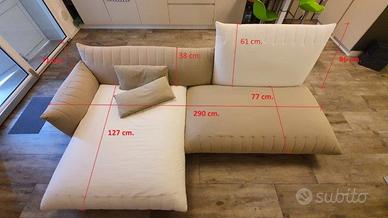 Originale divano moderno realizzato da Alberta modello Bellavita, in tessuto bicolore sfoderabile, imbottito in poliuretano a densità differenziata, componibile in diversi modi (ampliabile con altri pezzi della serie, esclusi); cuscini a corredo. Dim. max cm. 290*160*96H. Visibile previo appuntamento.