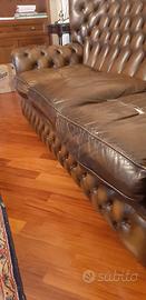 3 posti Chester modello Monk. E’ in buone condizioni generali ma i cuscini necessitano di restauro. Ritiro a carico dell’acquirente. Volendo è disponibile in coppia un secondo divando uguale a 2 posti.