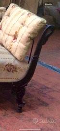 Vendo Ottomana, divano antico alla Turca dell’800. L’ottomana è un originale divano, simile ad un letto, cioè l’incantevole antenato del moderno divano letto. Si tratta di un antico divano, il progenitore dei sofà dell’Impero ottomano. Oggi è uno dei più originali mobili da arredare la zona giorno e anche la zona notte per la sua versatilità. Il rivestimento di questa ottomana dell’800 è in stoffa verde pisello con fasce fiorite; in qualche parte è leggermente deteriorato. La seduta è con molle e l’imbottitura è in vegetale; il tutto poggia su una struttura in ferro battuto. Misure: cm 185x70x75. Ritiro a Sarno (SA). No affaristi, solo persone seriamente interessate all’acquisto. Primo contatto via messaggio.