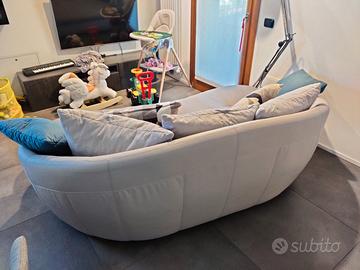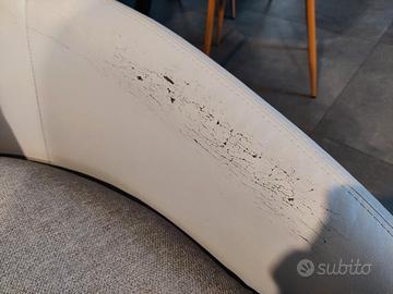 Divano ovale tre posti con cuscini con rivestimento ecopelle da sistemare. Condizioni come da foto, ben tenuto, sempre usato con copri seduta, mai macchiato ma purtroppo il rivestimento si è rovinato. Cedo a 50€ con ritiro presso il mio domicilio in zona Eurospin a Motta di Costabissara. Materiale: Tessuto e ecopelle • Larghezza (cm): 140 • Altezza (cm): 80 • Lunghezza (cm): 238 • Numero di Posti: 3 Acquistato nel negozio Ovvio di Torri di Quartesolo. Disponibilità immediata al primo che viene a ritirarlo di persona, no tramite corrieri e pagamenti con bonifico di dubbia provenienza
