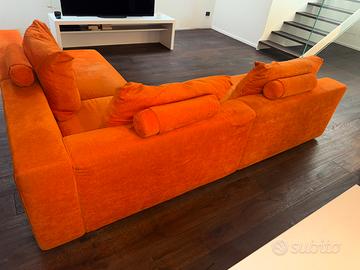 Divano ad angolo colore arancione 220 Cm per 266 Cm profondità 100 Cm seduta 75 Cm