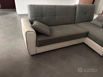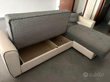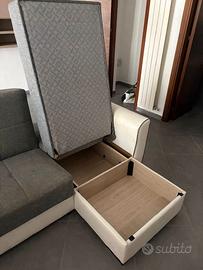 vendo per inutilizzo in ottime condizioni , divano trasformabile letto , con chaise longue e sedute con contenitore colore struttura bianca e cuscineria contone grigio