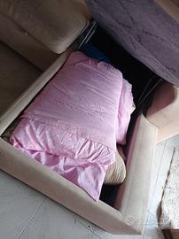 Vendo divano tessuto color beige scamosciato, con contenitore e letto estraibile. Misure 2.70 x 1.80 , la struttura è integra presenta alcune macchie. Si trova ad altofonte e deve essere sceso da un primo piano, ampio spazio per il parcheggio.