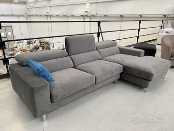 (ingombro totale cm 289) rivestito in velluto tecnico smacchiabile col. grigio.Poggiatesta con meccanismo di alzata manuale