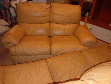 vendo divano di pelle 3 posti,tenuto benino sdraievole ,non divano letto più un divano 2 posti trasporto a carico acquirente 60 euro tutti e due