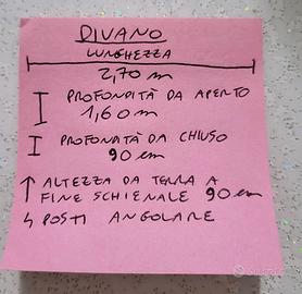 Vendesi divano usato, ma in buonissimo stato. Con penisola e sistema che lo trasforma in letto. Vero affare! Smontaggio e traporto a carico dell’acquirente.