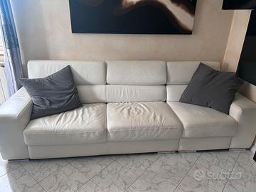 vendi divano pelle vera colore bianco ghiaccio tre posti con poggiatesta movibili