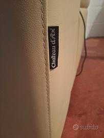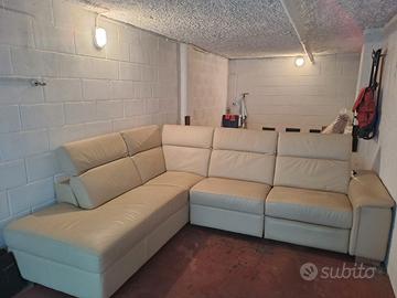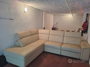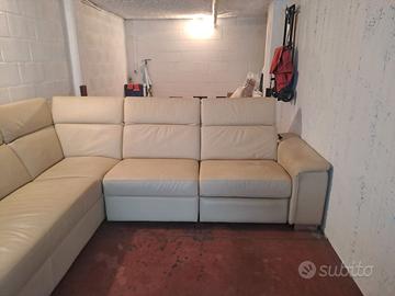 Anno 2015 Come nuovo. Poco utilizzato. Pelle Colore Beige Chiaro. 4 posti Dimensioni LunghXLarghXAlt in cm: 253X168X100 con chaise longue 253X94X100 senza chaise longue Seduta con movimento Relax poggiagamba elettrico su un modulo