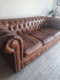 Vendo divano vintage 3 posti in pelle CHESTERFIELD con lavorazione capitonné, colore marrone.