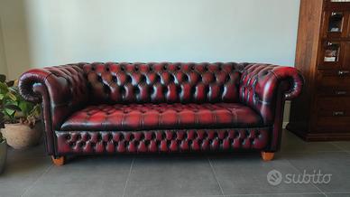 Vendo divano come da foto, 3 posti(180 seduta)pelle vintage colore ciliegio scuro/nero.. originale per amatori. ottimo complemento d'arredo.
