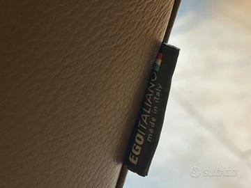 Divano Sueli in pelle con fianchi in risalto EGO Italiano Lo splendido divano con fianchi anche in contrasto e piedini in metallo Sueli è un magnifico divano dalle linee orientaleggianti, realizzato da Ego Italiano in vera pelle Bull. La struttura è realizzata in legno abbinato a particelle di legno grezzo biodegradabile e pannelli di fibra di legno duro. Cuscini di seduta, schienali e braccioli in poliuretano espanso a densità differenziata ricoperti da una falda di dacron da 200 gr/mq. Piedi nel modello Flower (disegno esclusivo Egoitaliano) realizzati in alluminio lavorato dal pieno, lucidati e rifiniti a mano. Gli schienali sono reclinabili a seconda del comfort desiderato, grazie al meccanismo manuale a cricchetto di cui sono dotati. Le dimensioni di questo divano sono: Larghezza 188 cm x profondità 110 cm. L’altezza varia da 77 a 100 cm, in rapporto al fatto che i cuscini siano abbassati o alzati; altezza di seduta di 46 cm.