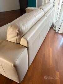 Divano pelle 2/3 posti color avorio in bone condizioni Larghezza 92 Lunghezza 210 Con alcuni difetti sulla seduta Comprato da divani e divani Con piedino in legno , molto carino