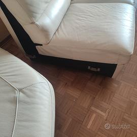 Divano in pelle Natuzzi colore beige. Struttura e rivestimento in ottimo stato. Nessun taglio o screpolatura nella pelle. Sono presenti segni di usura/abrasione su uno schienale come evidenziato in foto.