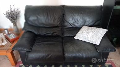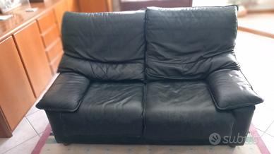 N. 2 divani a due posti , pelle nera morbidissima. Lunghezza cm 140 x profondità cm 78.
