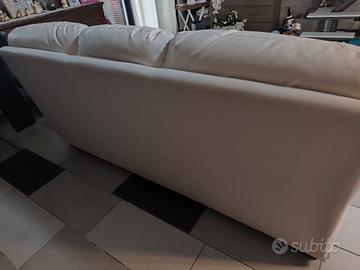 vendo divano in pelle panna,nuovo usato pochissimo,sempre coperto,nessun segno misure due metri lunghezza .
