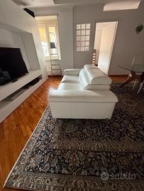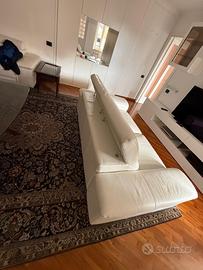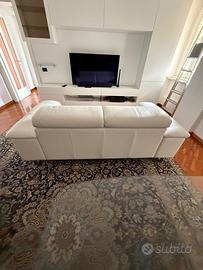 Divano Poltronesofà bianco in pelle due posti (tre sedute) . Nessun segno, nessuna macchia, usato pochissimo per la casa che a suo tempo era disabitata per motivi di lavoro fuori Roma, vendo per sostituire con divano letto.