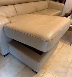 Divano 3 posti + penisola vera pelle colore tortora/beishe penisola contenitore poggiatesta reclinabile