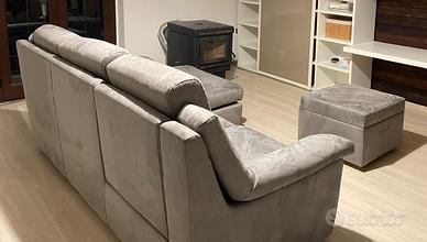 Vendo divano grigio con penisola a sinistra e seduta reclinabile elettrica a destra, completo di pouf contenitore. Marca Poltronesofà.