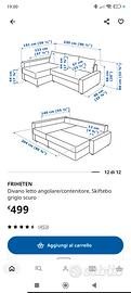 divano Ikea buone condizioni con penisola, cassettone e diventa letto una piazza e mezza. Per dimensioni vedere ultima foto